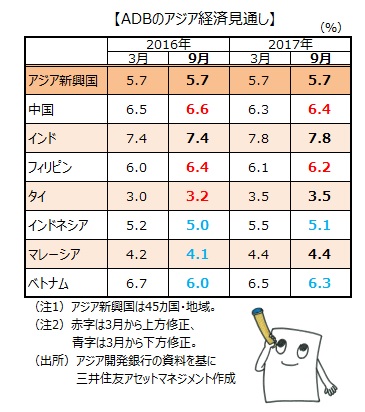 上方修正された「アジア経済見通し」(アジア) 【キーワード】2016年10月3日