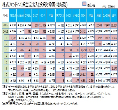 8月は新興国(GEM)、米国への流入継続【デイリー】2016年8月30日