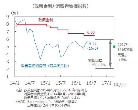 【今後の展開】先行きは新総裁の下で追加利下げも■物価については、モンスーンの多雨が続く見込みであることから、農産物のインフレリスクが後退し、年後半にかけて鈍化に向かうと見られます。ラジャン総裁の後任はまだ決まっていませんが、成長推進志向の新総裁が選ばれる蓋然性が高いこともあり、年内にもRBIの追加利下げが行われると見込まれます。