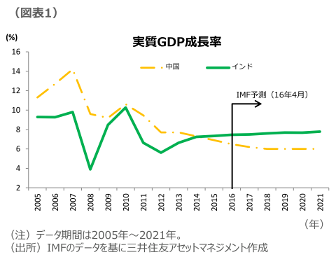 IMFによれば、インドの成長率は2021年に向けて高成長を維持することが予想されています(図表1)。