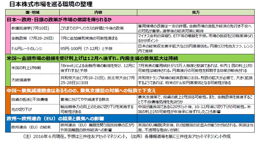 日本の株式市場 日本株式市場を巡る環境を整理【デイリー】2016年6月30日