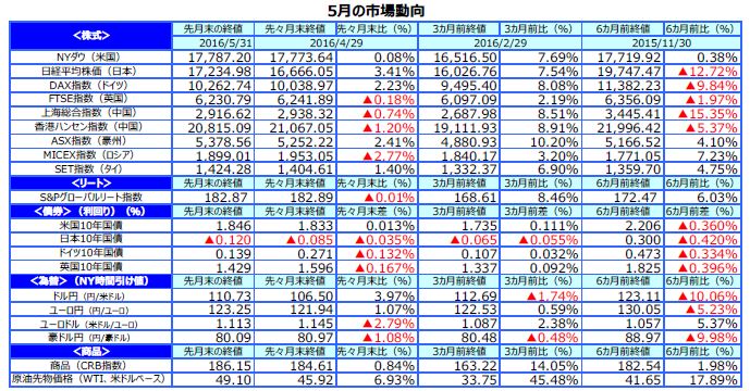 【情報ご提供資料】「先月のマーケットの振り返り(2016年5月)【マンスリー】」