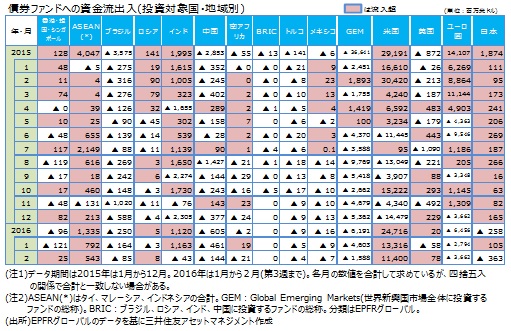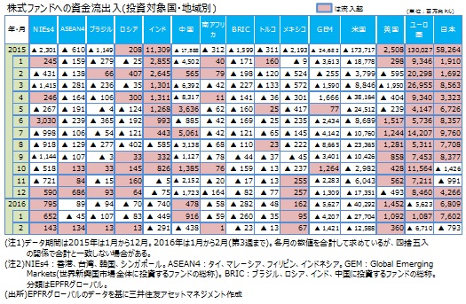 (*)EPFRグローバル:米国マサチューセッツ州に本社を置く金融商品の調査会社。2016年1月末現在、23.4兆米ドル規模の世界のファンドの資金フローデータを持つ。