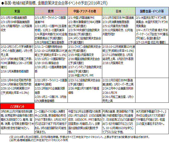 中国では2月は主要統計の発表のない月ではあるが、15日の貿易収支、18日のCPI、PPIで景気の回復度合いを確認したい。主要国の金融政策は据え置きを予想。