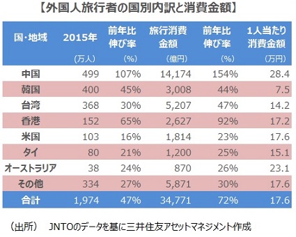 【ポイント1】2015年の「外国人旅行者」は47%増の1,974万人