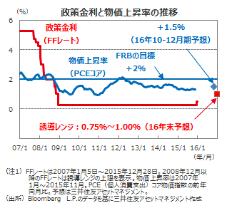 【今後の展開】利上げは緩やかなペースとなる見通し■FRBは、15年12月に政策金利を0.25%引き上げ、誘導レンジを0.25%-0.50%としました。景気、雇用の改善が持続していることから、16年も引き続き利上げが実施される見通しです。