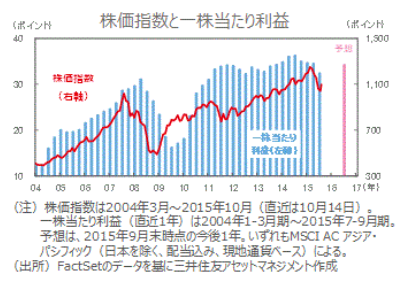 「アジア・オセアニア株式市場の現状と見通し 米中の不透明要因払しょくにつれ、利益成長を織り込みへ【デイリー】」2015年10月15日