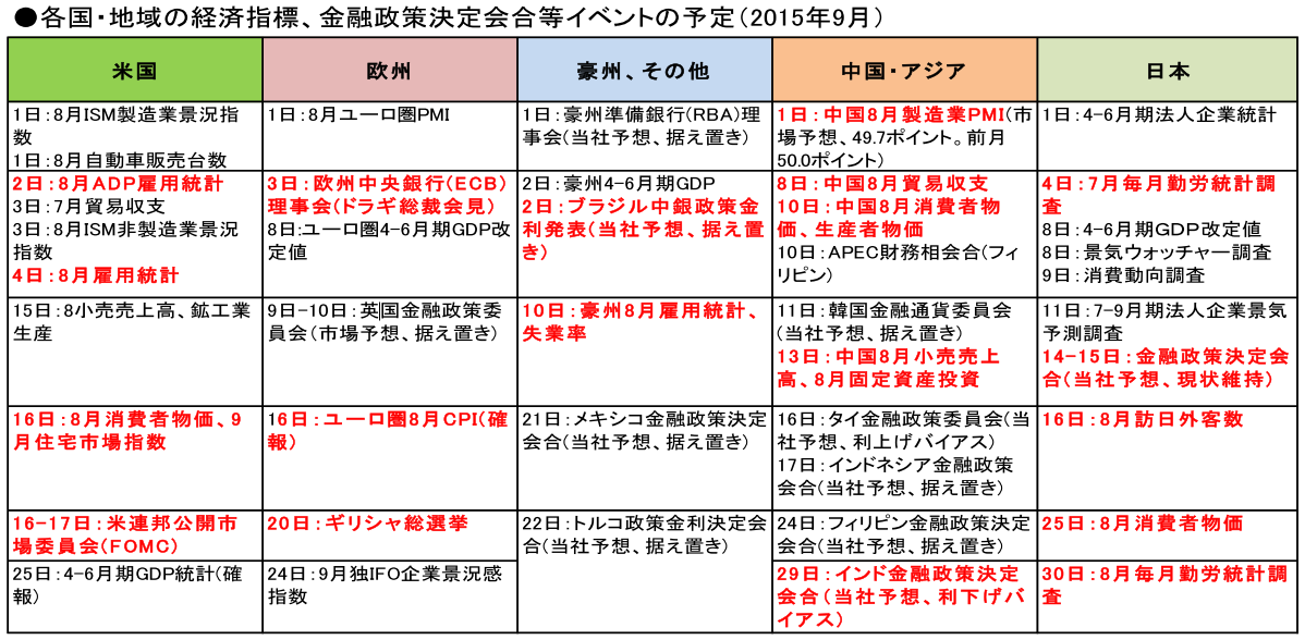 「年内の主なイベントと金融市場への影響」2015年9月1日